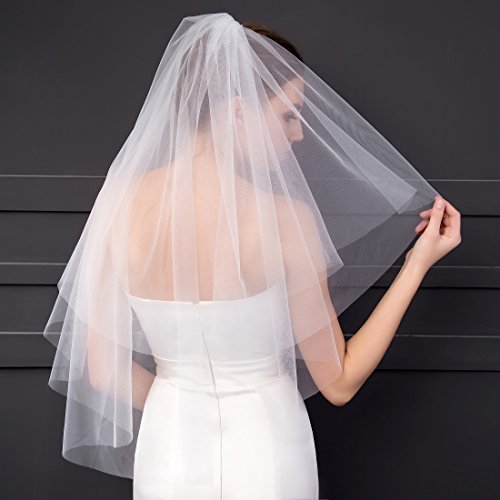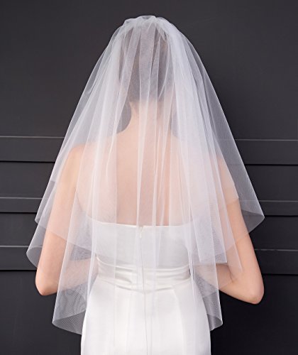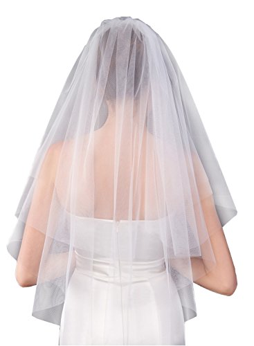 (Wishopping)/Accessories/Scarves/DIRECT FROM USA/Wishopping Women's Short 2 Tier Simple Ivory Wedding Bridal Veil With Comb L27IV
