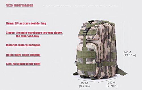 product description Are you outdoor enthusiasts? Will you have an exciting CS game? I believe that this 3P march backpack outdoor war game shoulder bag will help you complete your wish. Our 3P march backpack outdoor war game shoulder bag is made of high quality Oxford cloth, with high durability, so it is very suitable for outdoor use, such as hiking, travel and cycling. In addition, it consists of several adjustable buckle, belt, high-intensity insert button and smooth zipper and other components. Finally, due to the 28L large capacity, you can use water bags, laundry tools and other items everyday. All practical tools for sports enthusiasts! Features Made of high quality Oxford cloth, with high durability Comfortable mat, small and pockets, economical and practical Can be put into the water bag, laundry tools and other daily necessities Very suitable for travel, hiking, camping, school and so on Waterproof, CP camouflage color effective concealment It consists of several adjustable buckles, belts, high-strength insert buttons and smooth zippers All sports enthusiasts practical accessories specification Material: Oxford cloth Capacity: 28L Suitable group: Color: cp camouflage Weight: 33.16 ounces / 900g Size: (9.75 x 8.66 x 17.16) "/ (25 x 22 x 44) cm (LXWXH) Waterproof: Yes Package Contents: 1 x backpack 0 |