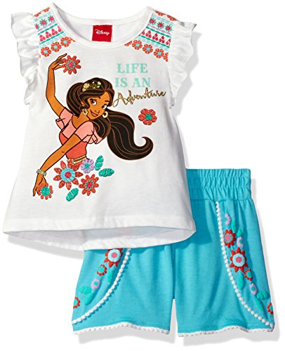 Disney Toddler Girls' 2 Piece Elena of Avalor Pom Short Set, Aqua, 4t