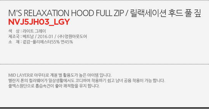 [NORTH FACE] M S RELAXATION HOOD Pool (NF NVJ5JH03 LGY)