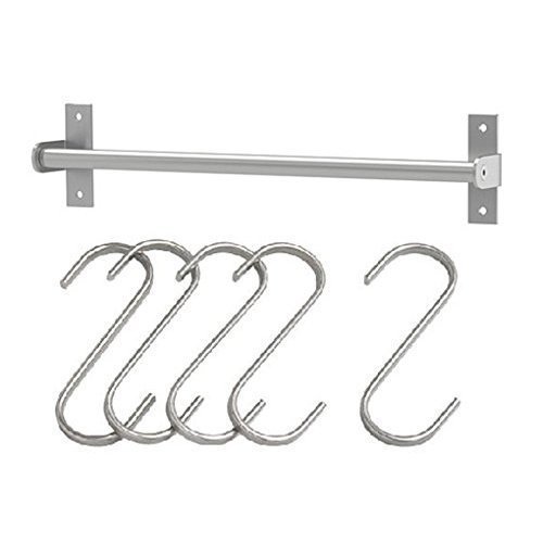 Ikea Stainless Steel Kitchen Organizer Set, 31.5 Inch Rail, 5 Hooks, Silver