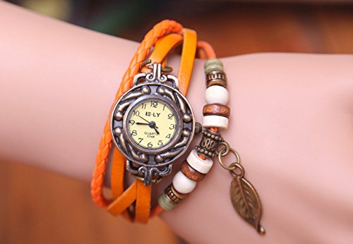 -. Feature : Leather weaved bracelet with retro beads, Floral and vintage case, a leaf pendant.