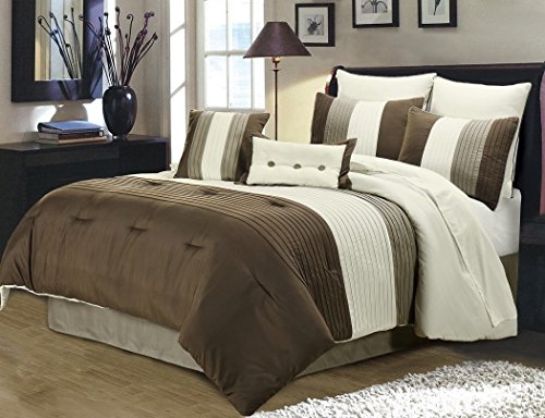 Chezmoi Collection 8-Piece Luxury Stripe Duvet Cover Set (King, Brown/Off-white/Taupe)