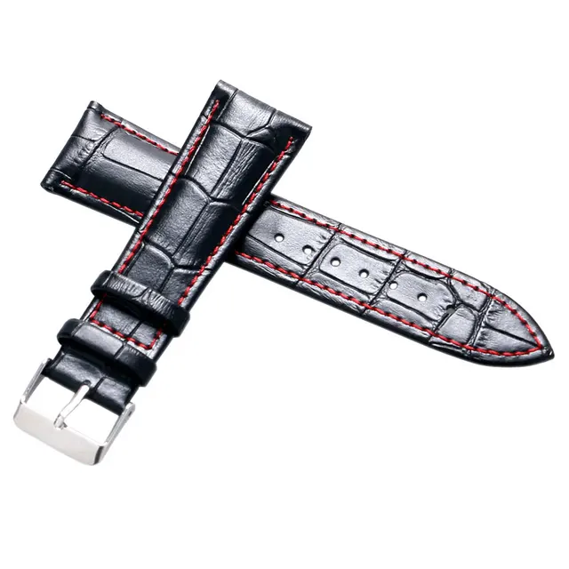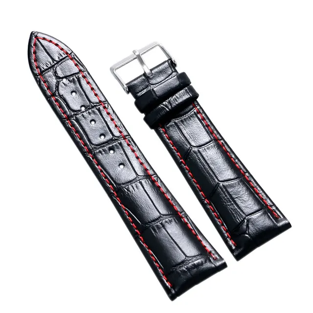 | [해외]18 미리메터 20 미리메터 22 미리메터 24 미리메터 블랙 정품 가죽 손목 시계 밴드 남성 여성 시계 스트랩 핀 버클 |
