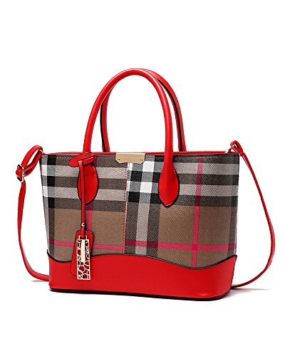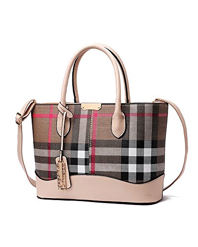 -. Title : Lady Womens Designer Stylish Grid Top-Handle Handbag Leather Check Shopping Tote Shoulder Bag