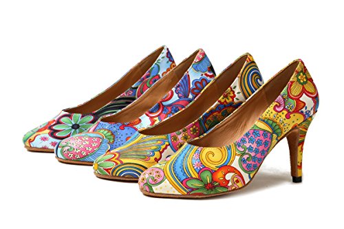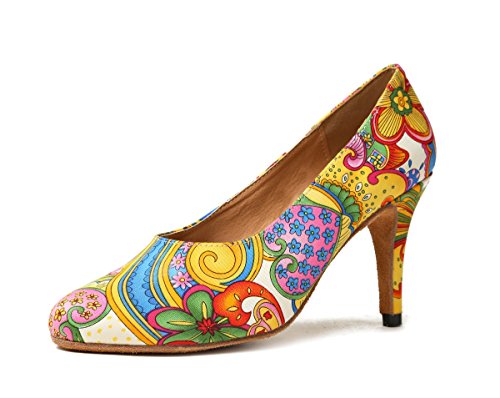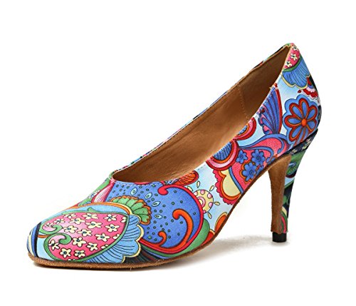 (Minishion)/Women's/Athletic Outdoor/DIRECT FROM USA/Minishion GL254 Women's Floral Printed Satin Classic Social Dancing Shoes Wedding Pumps