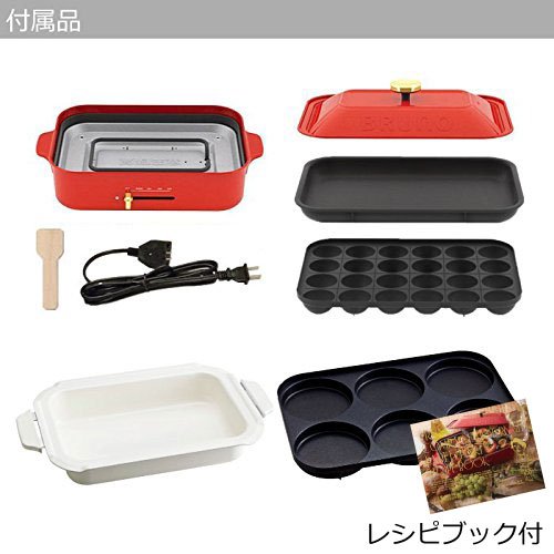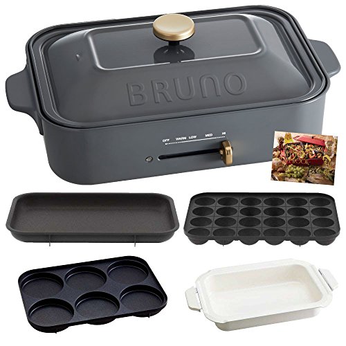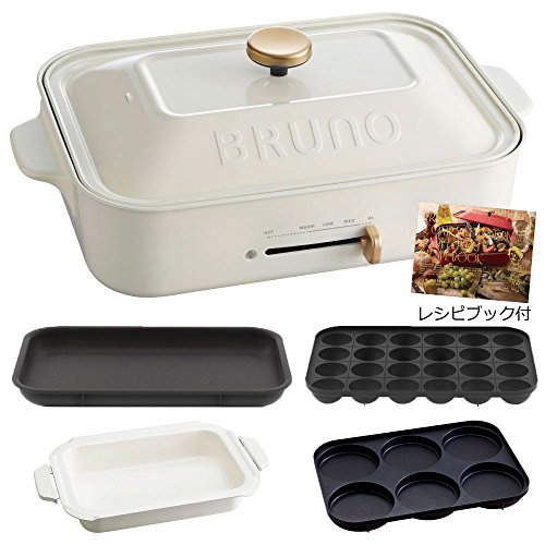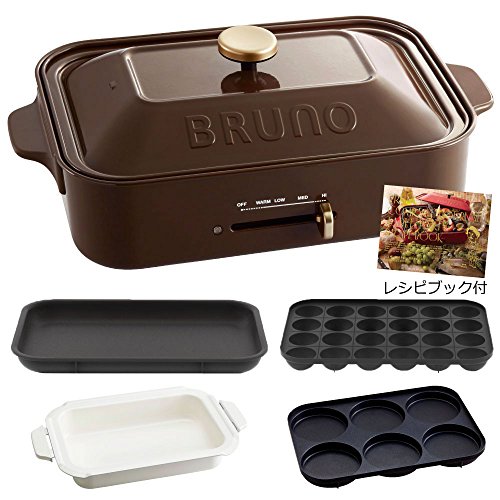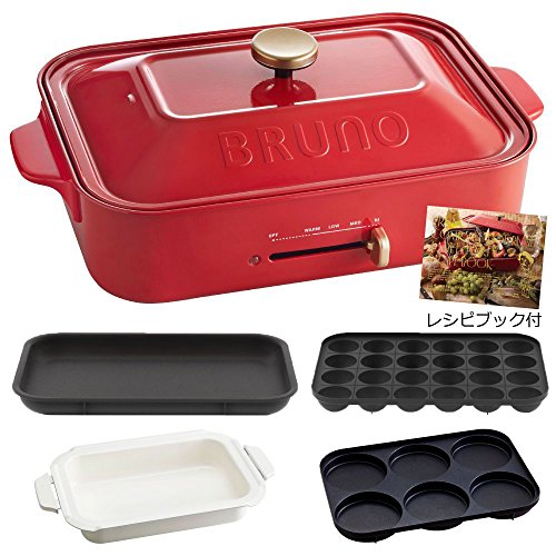 Bruno 【 레시피(요리처리법) 북 부착 】 BRUNO 콤팩트 핫 플레이트 + 세라믹 코트과 + 멀티 플레이트 3점 세트