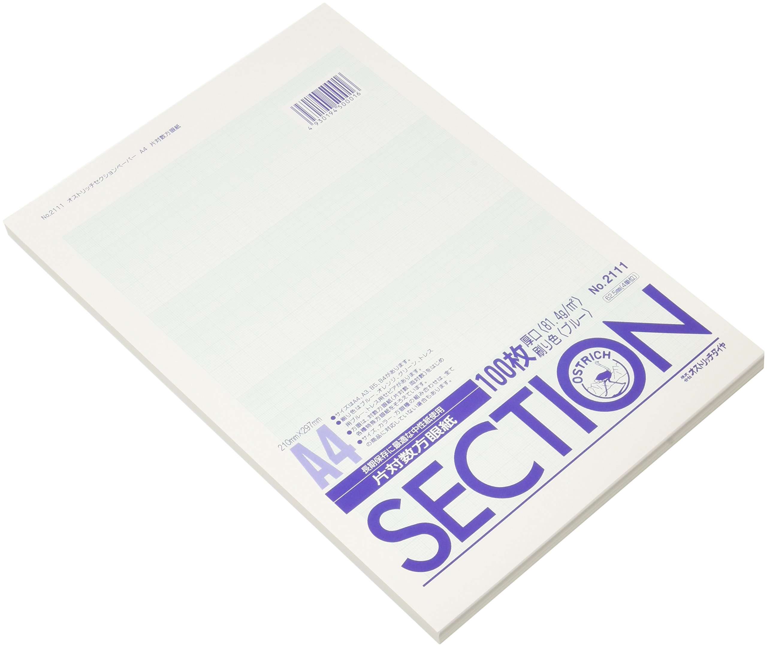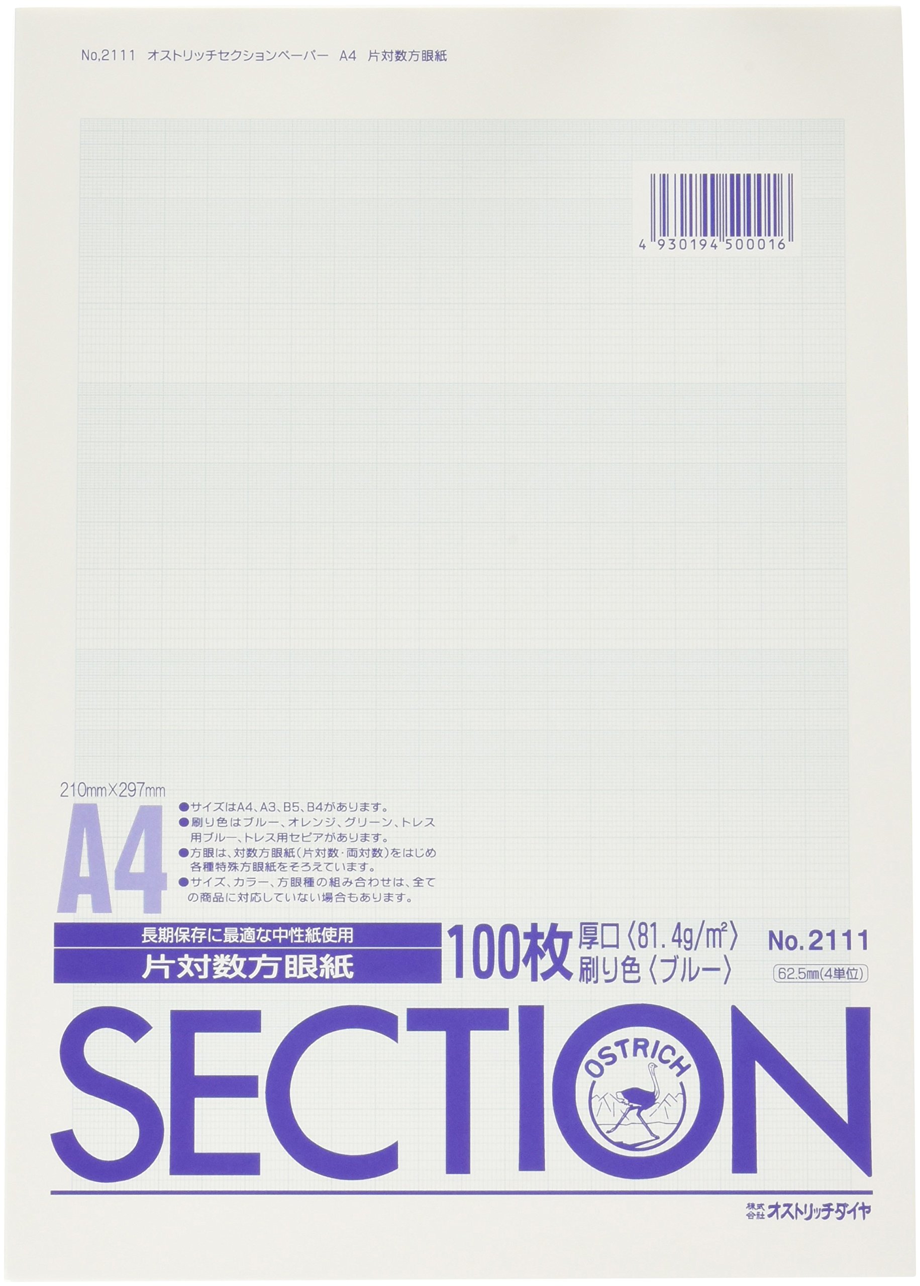 Ostrich A4 piece logarithmic graph paper thickness Blue 100 sheets pack 2111