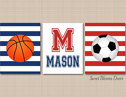 -. Title : Sports Nursery Wall Art Basketball Soccer Kids Room Decor Red Navy Blue Monogramm- UNFRAMED 3 PRINTS (NOT CANVAS)C498