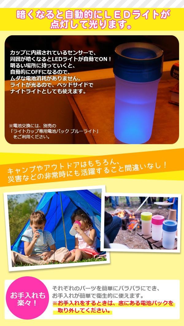 倒しても逆さにしてもこぼれないのに、キャップを付けたままコップのように360度どこからでも飲めます!カップに内蔵されているセンサーで、周囲が暗くなるとLEDライトが自動でON!暗くなったときに置いた場所がわかるのも便利です。 |