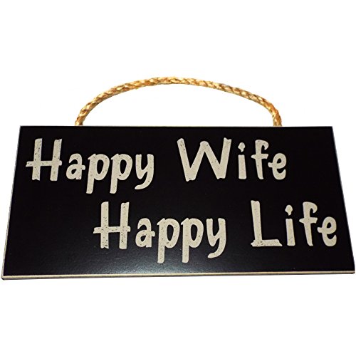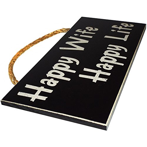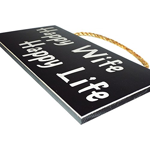 Happy Wife Happy Life Wood Sign for Home Wall Decor -- PERFECT FUNNY QUOTES GIFT!