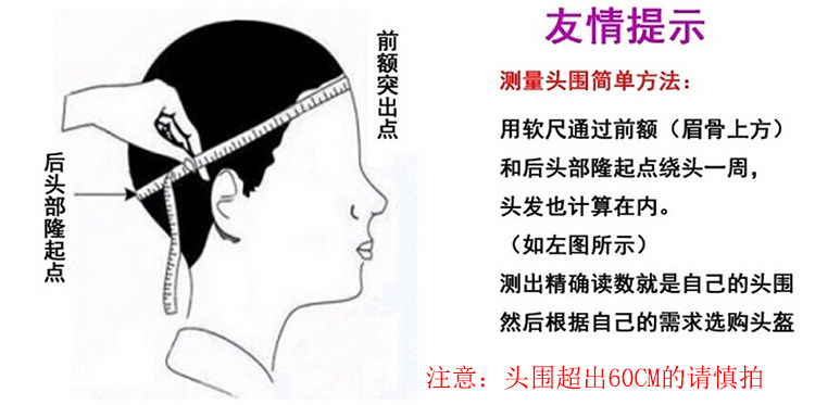 此款头盔适合头围53-59CM佩带,60CM的头围请别买