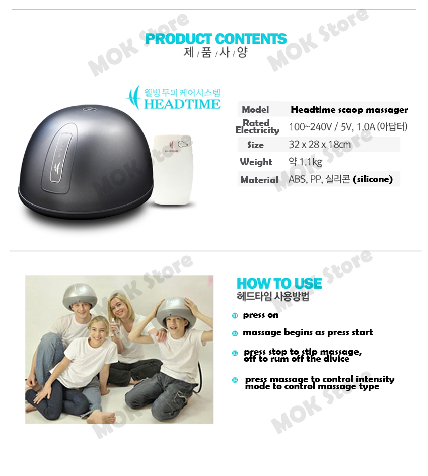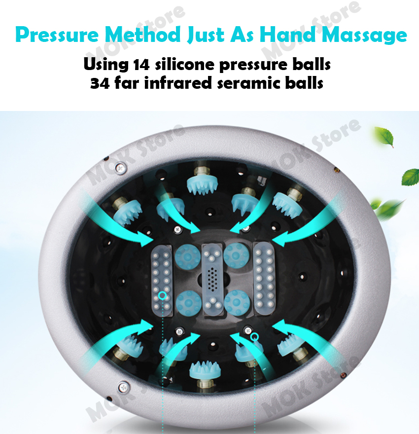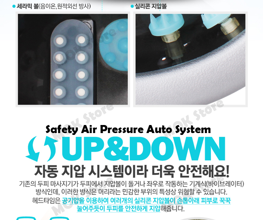 with air (pneumatic method) to massage a scalp (head) with 29 acupuncture balls.