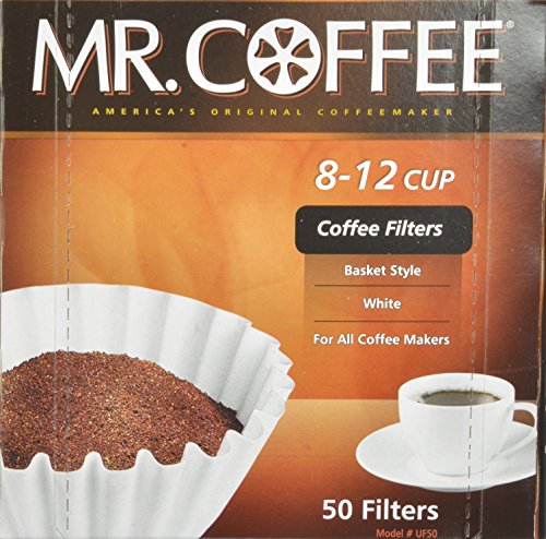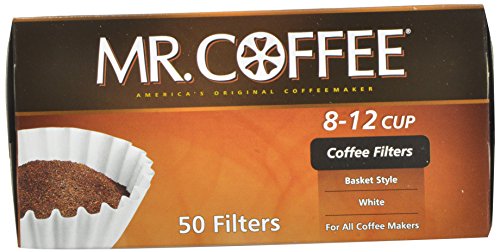 Mr. Coffee Basket Coffee Filters, 8-12 Cup, White Paper, 8-inch, 50-Count Boxes (Pack of 12)