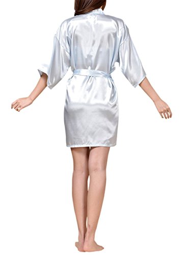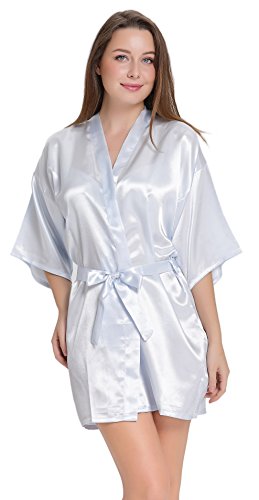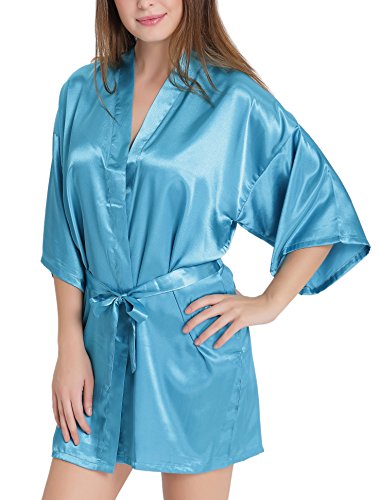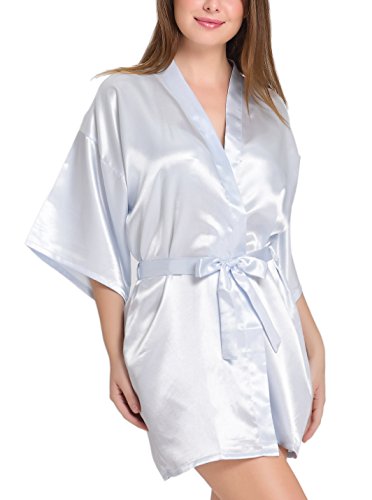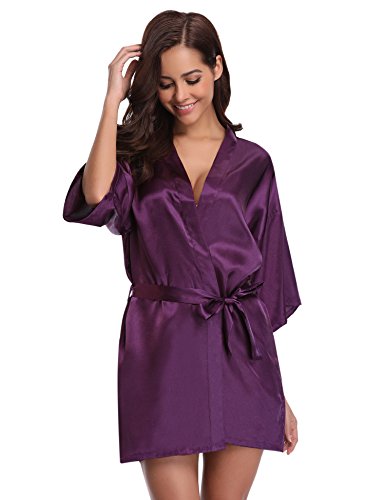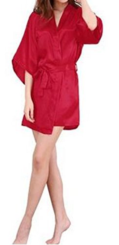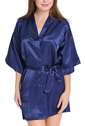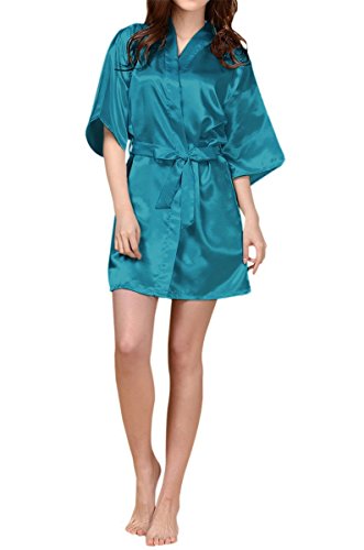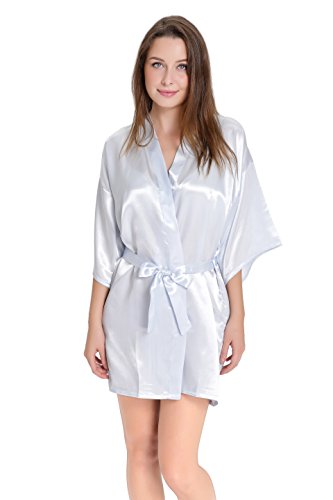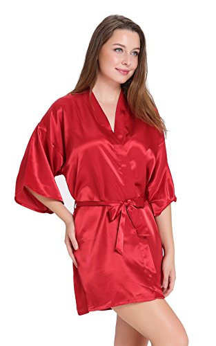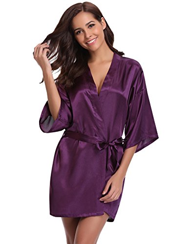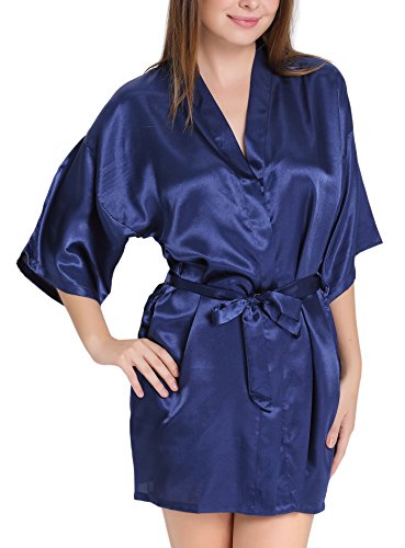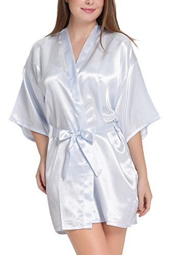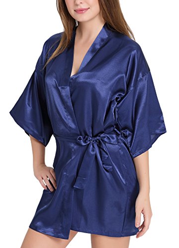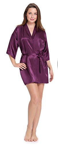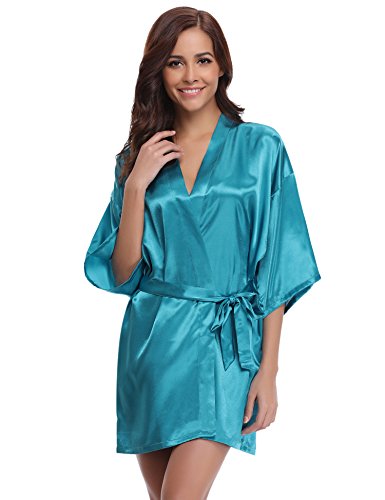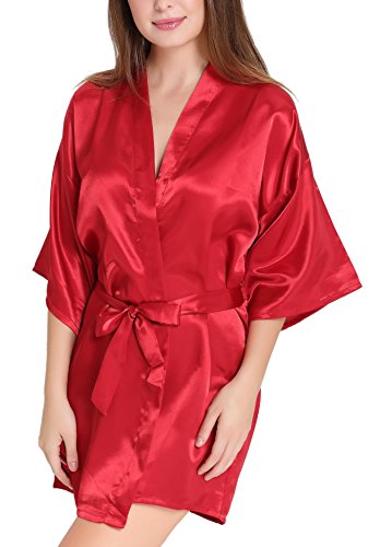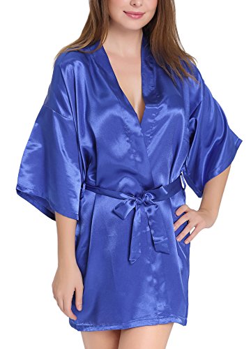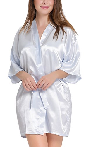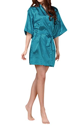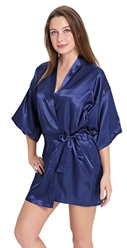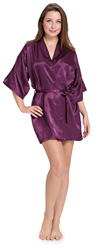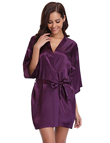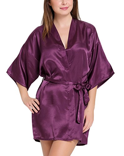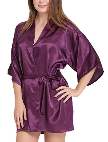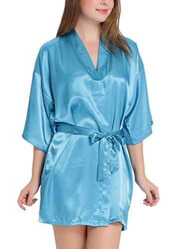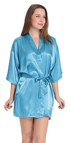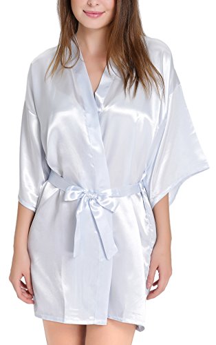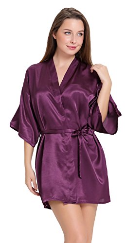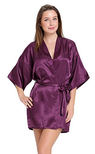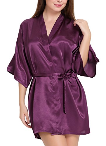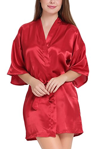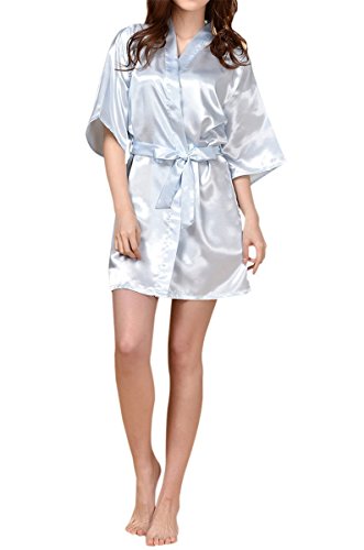 | Aibrou Women's Kimono Robes Satin Pure Colour Short style with Oblique V-Neck |