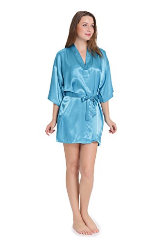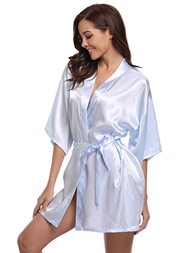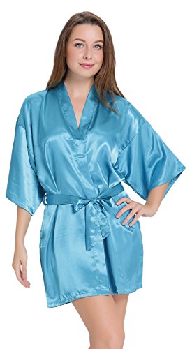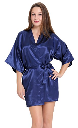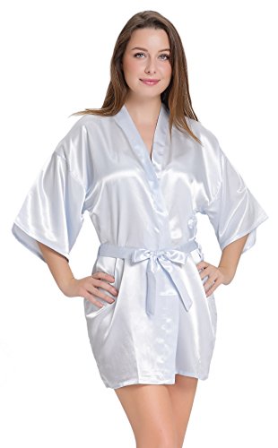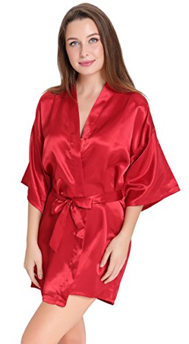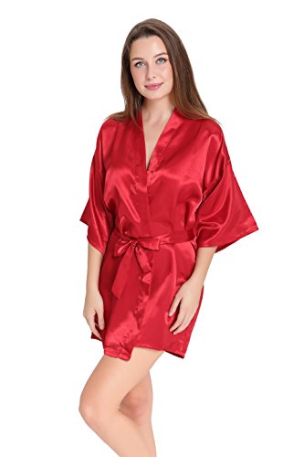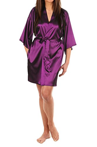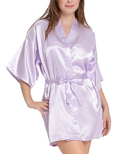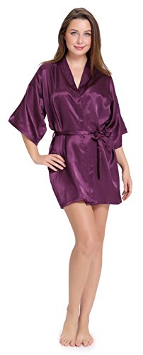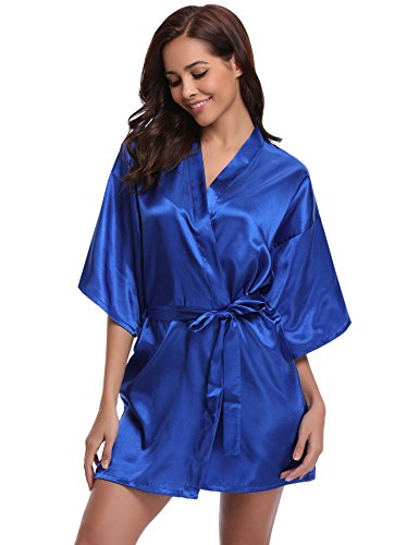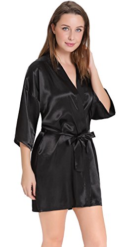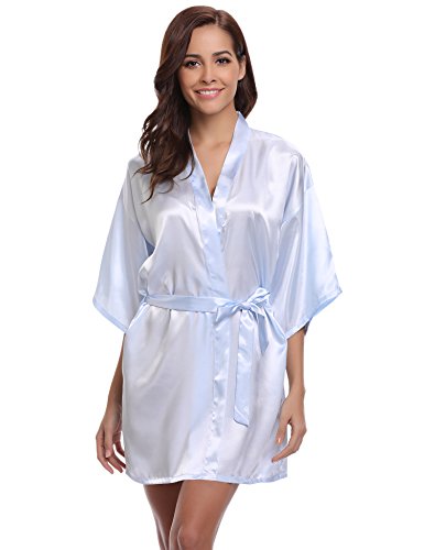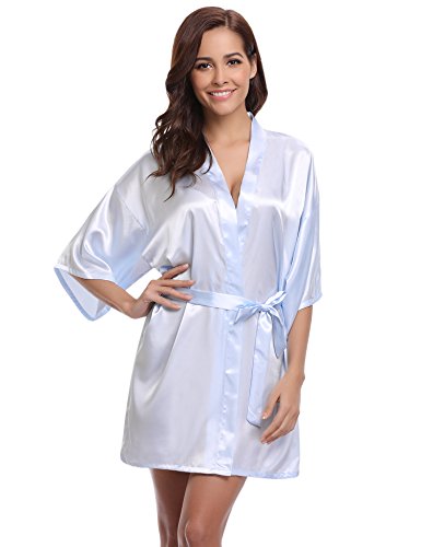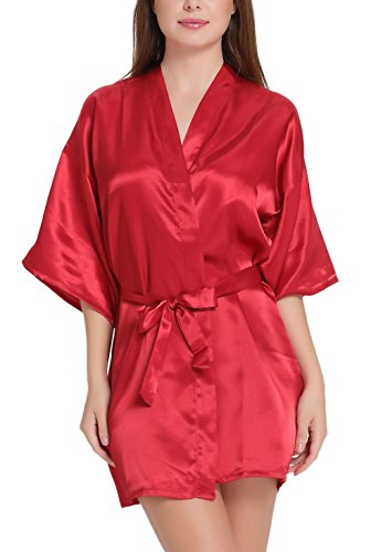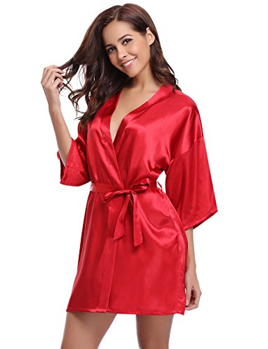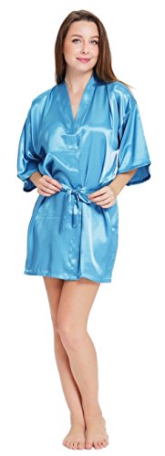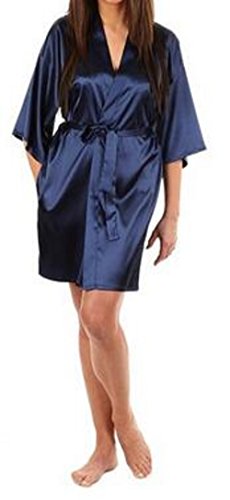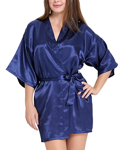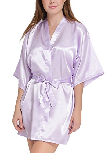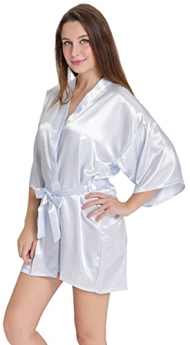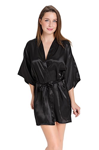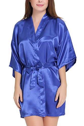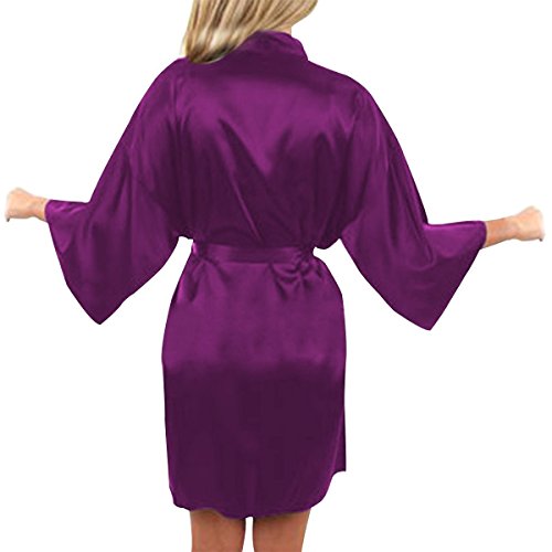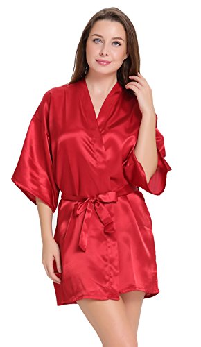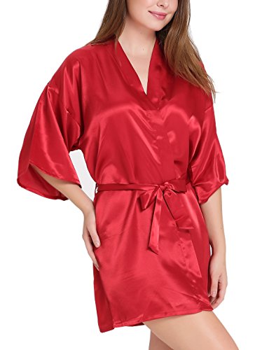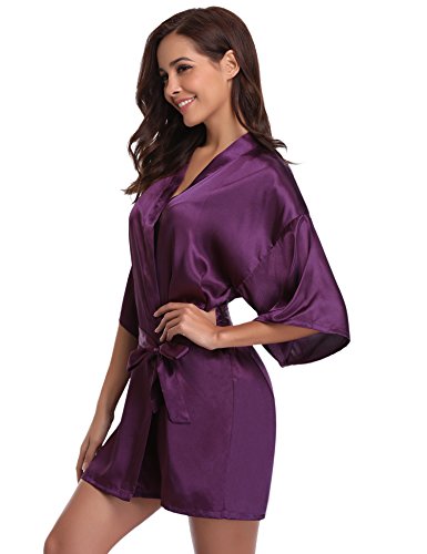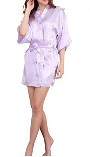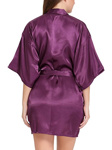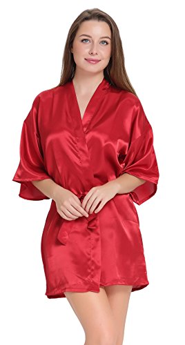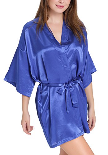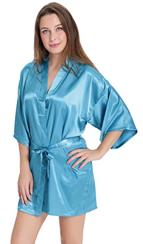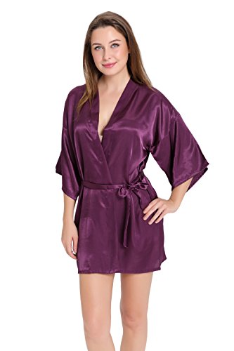 | Aibrou Women's Kimono Robes Satin Pure Colour Short style with Oblique V-Neck |