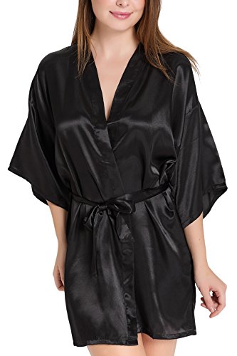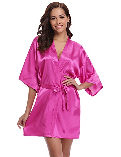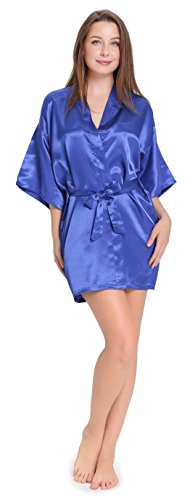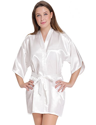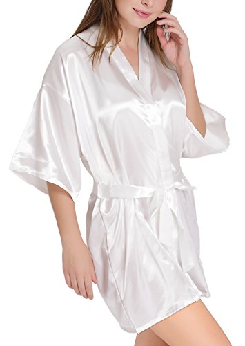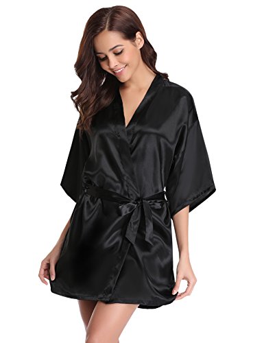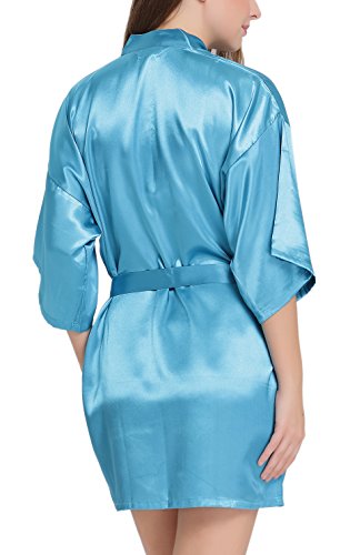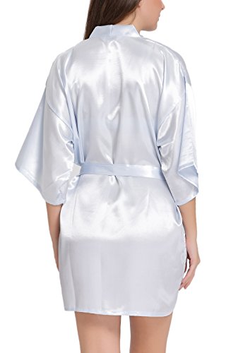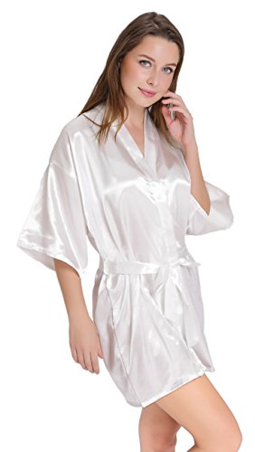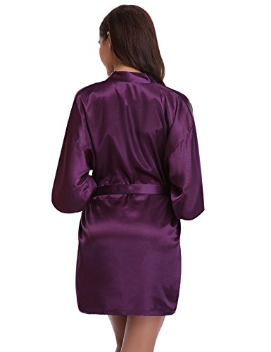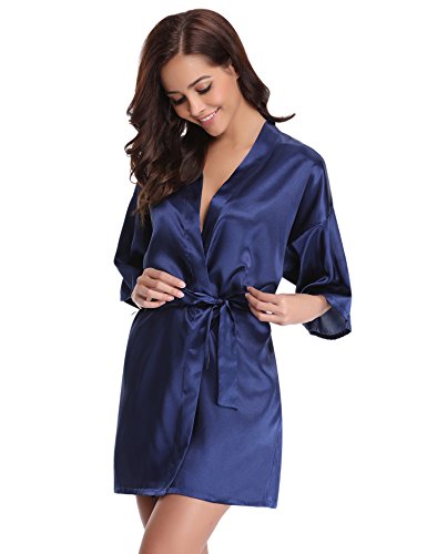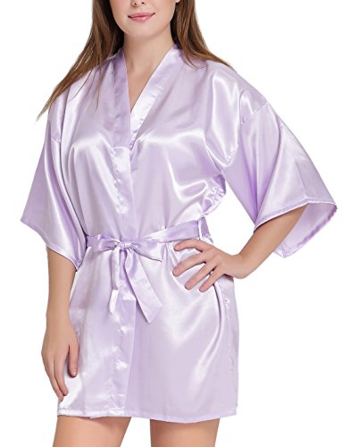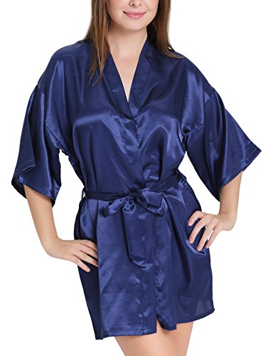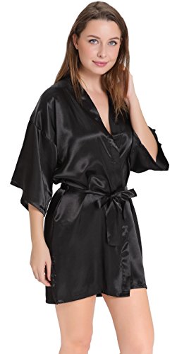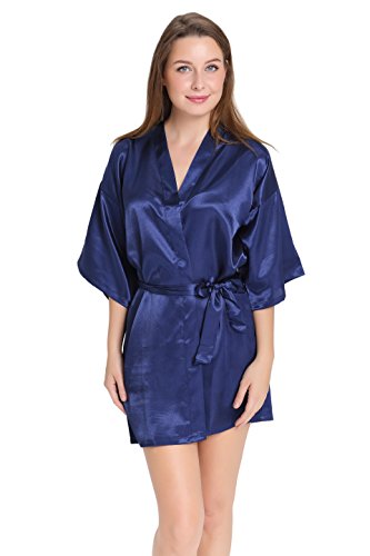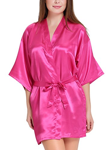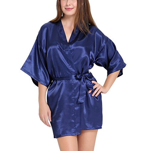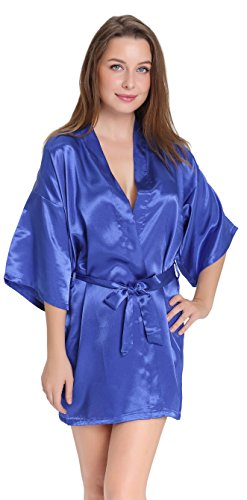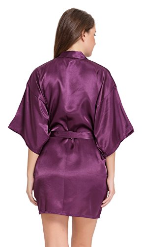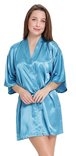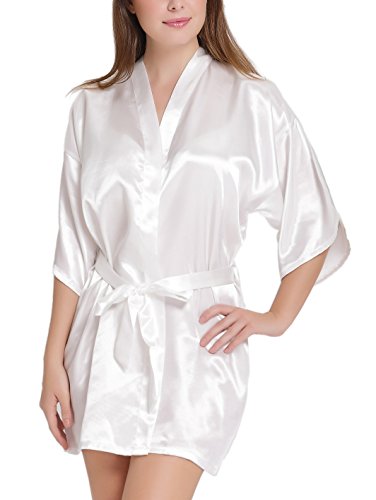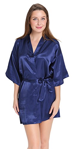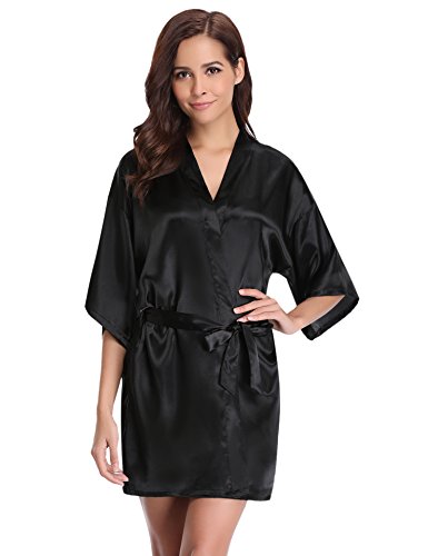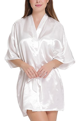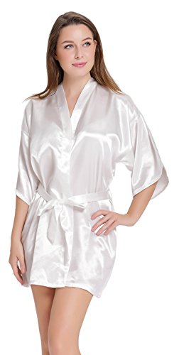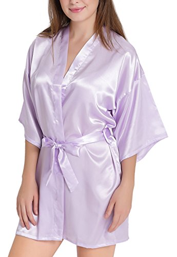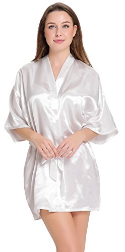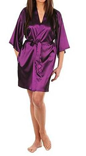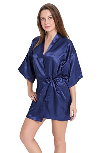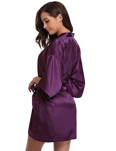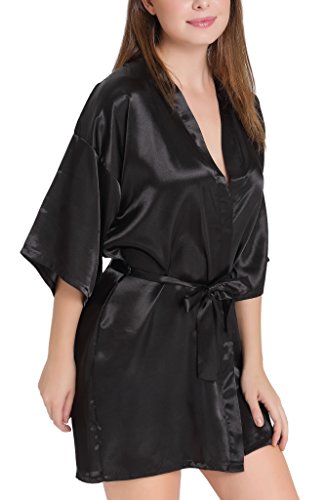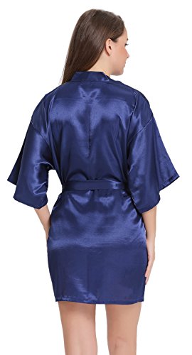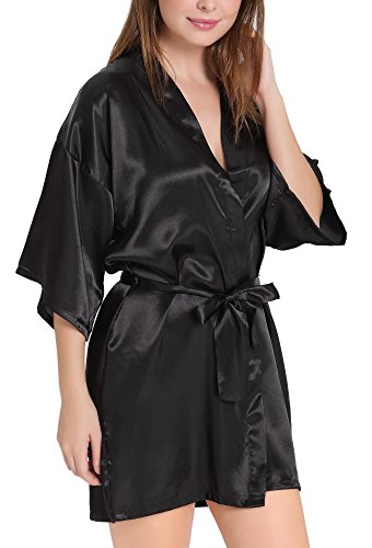 | Aibrou Women's Kimono Robes Satin Pure Colour Short style with Oblique V-Neck |