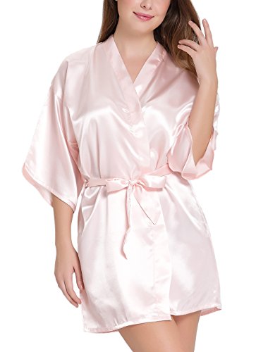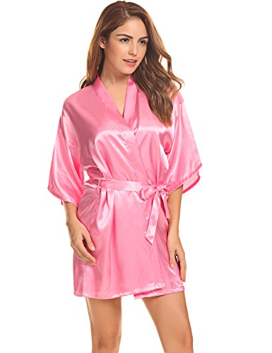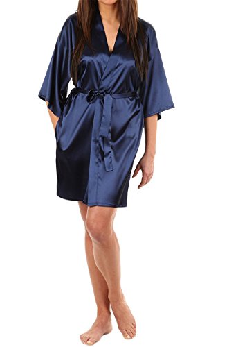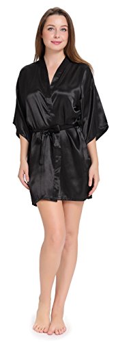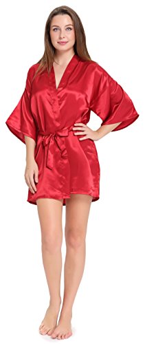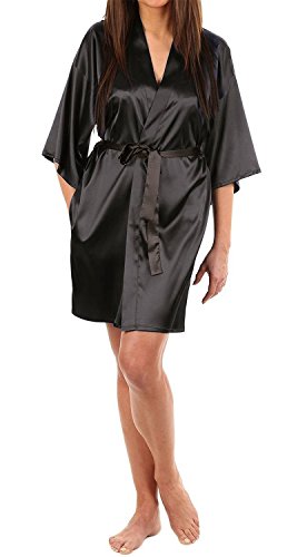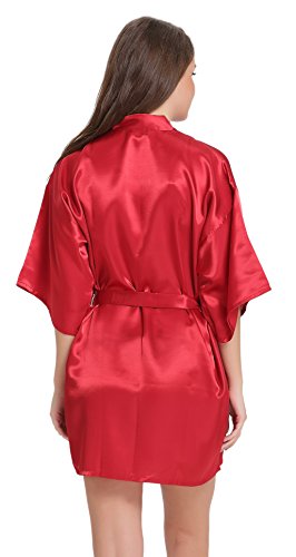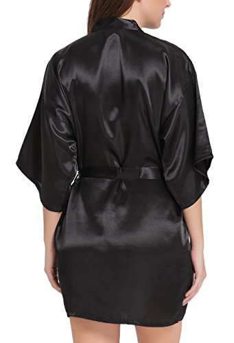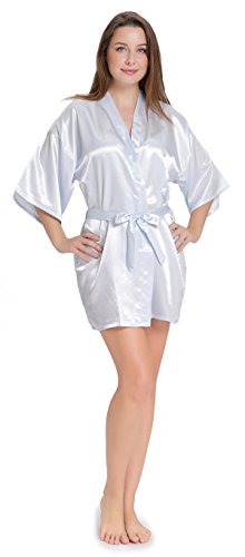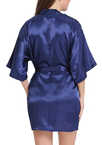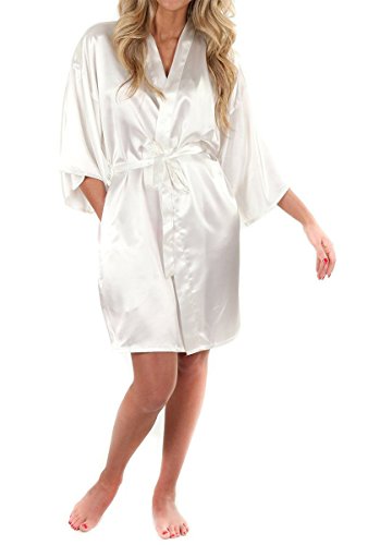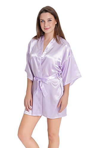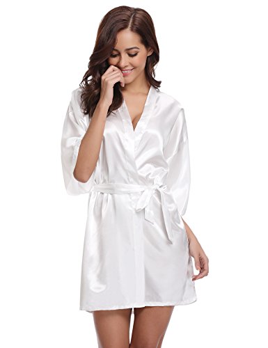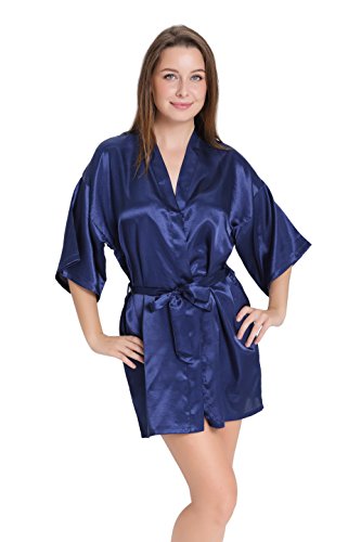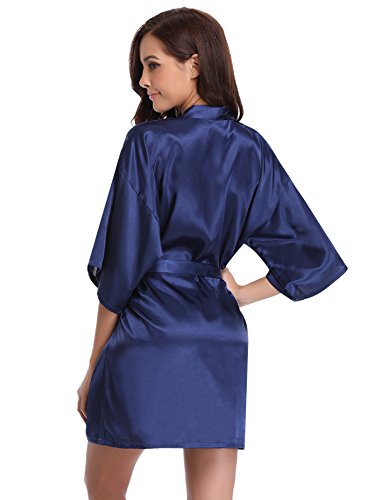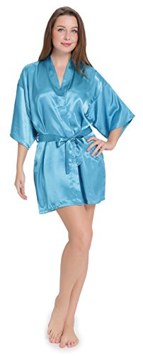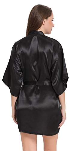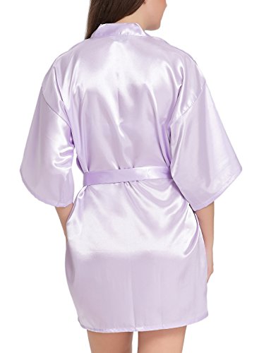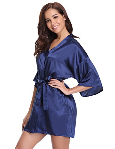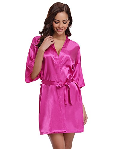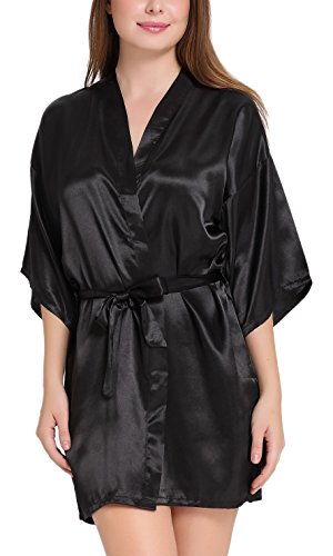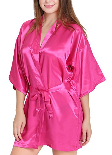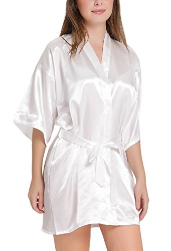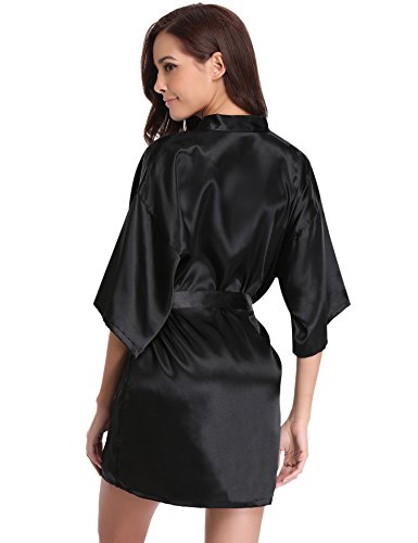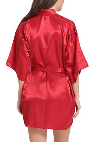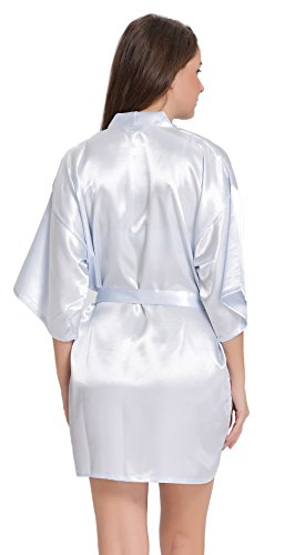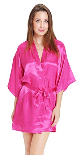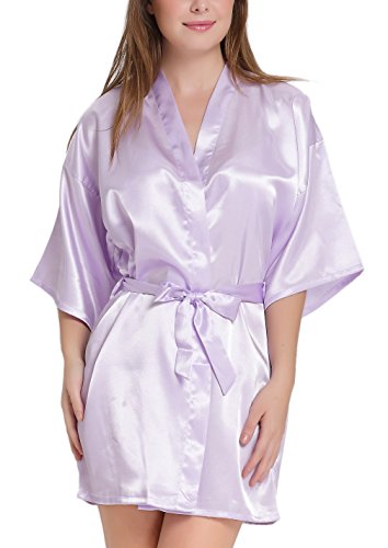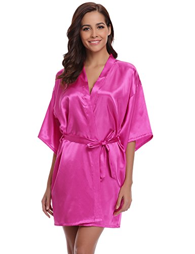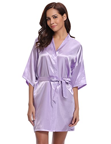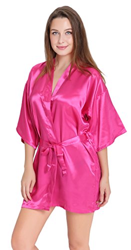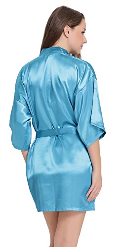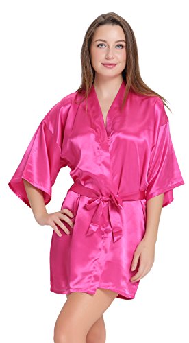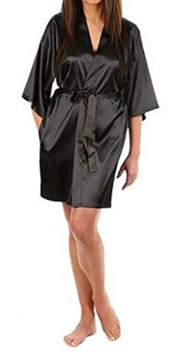 | Aibrou Women's Kimono Robes Satin Pure Colour Short style with Oblique V-Neck |