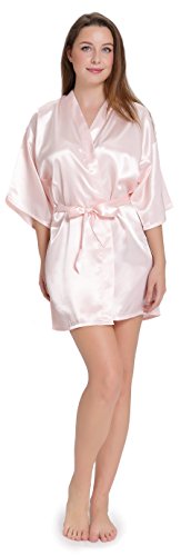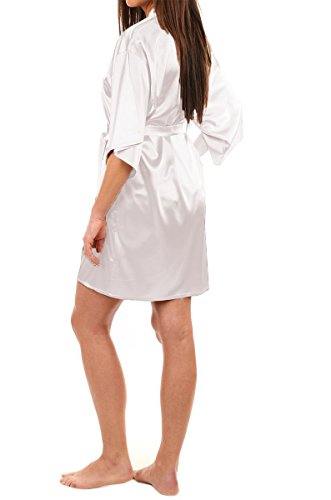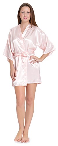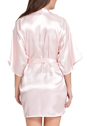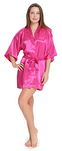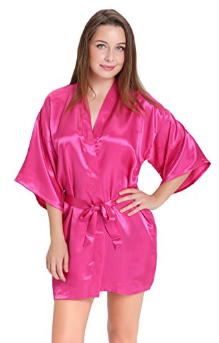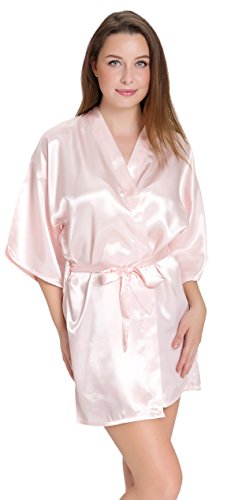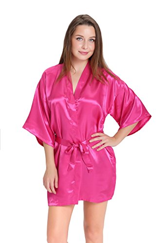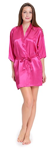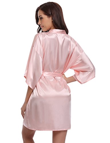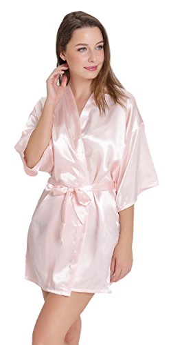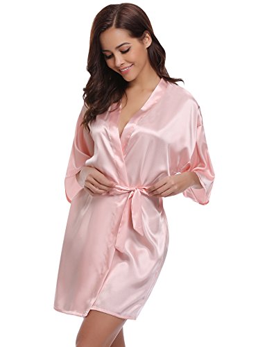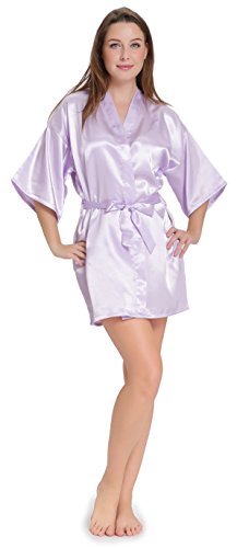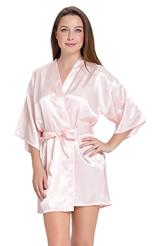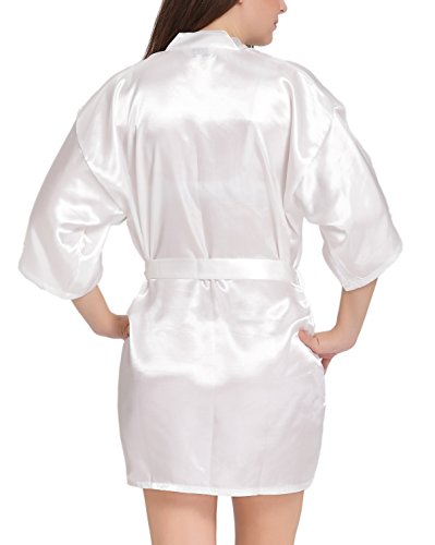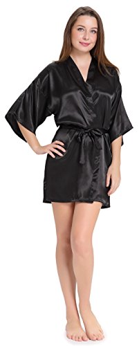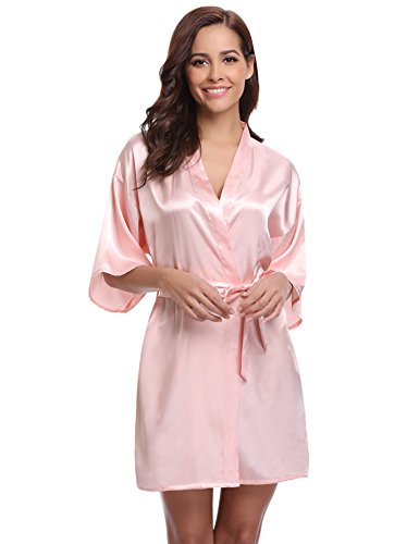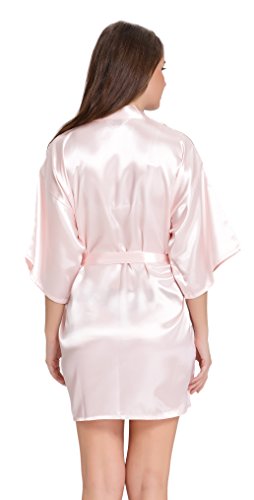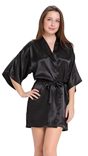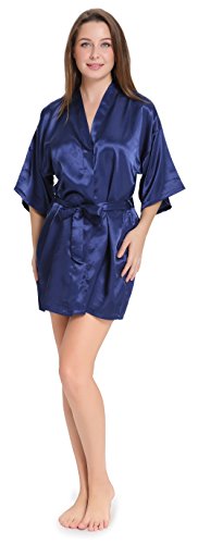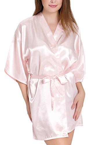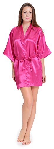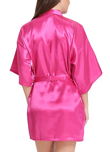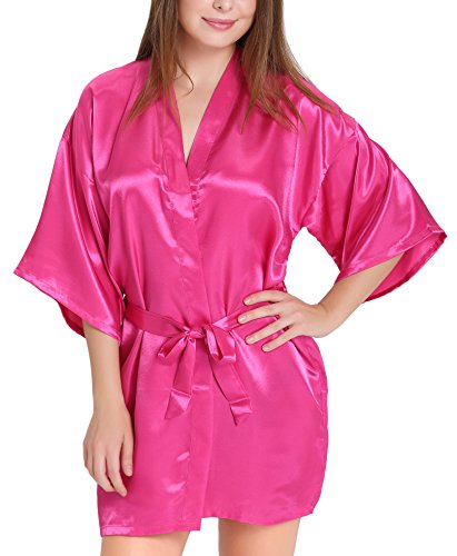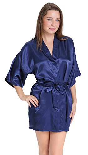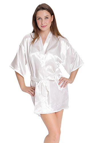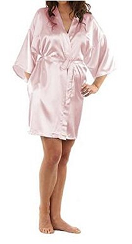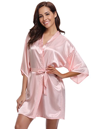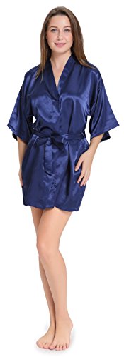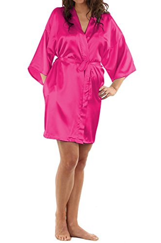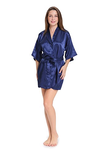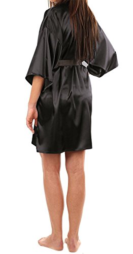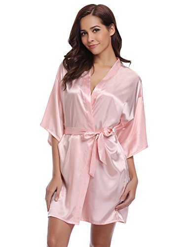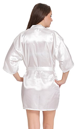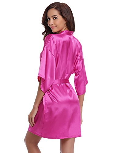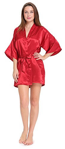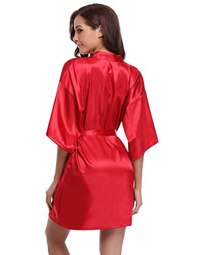 | Aibrou Women's Kimono Robes Satin Pure Colour Short style with Oblique V-Neck |