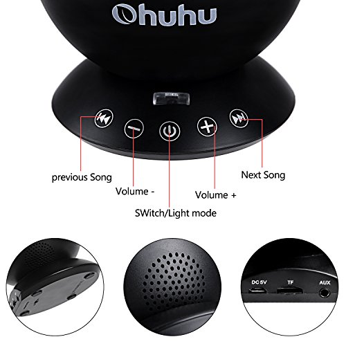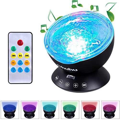 Ohuhu Remote Control Night Light Ocean Wave Light Projector 7 Colors with Bulit-in Speaker, Black