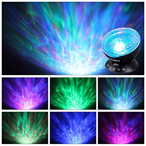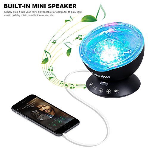 - 7 COLORS MODES & BUILT-IN MUSIC PLAYER: Bring the seaside home to you, give yourself a piece of the (ocean) in multiple changes of color to create a relaxing, romantic atmosphere. Built-in mini speaker, simply plug it into your phone, mp3, computer to play music or insert a TF card, also comes equipped with 4 built-in lullaby songs