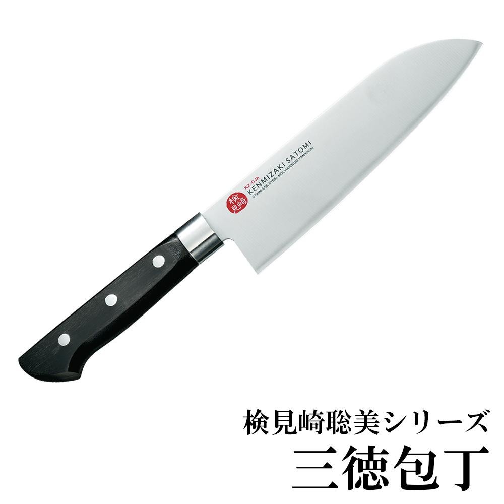 モリブデン・バナジウム鋼使用で切れ味抜群♪ 製造国:日本 素材・材質:刀身:モリブデン・バナジウム鋼、柄:POM樹脂、口金:ステンレス鋼 商品サイズ:刃渡り:165mm、全長:290mm、板厚:1.8mm 仕様:食洗機使用可 ※サプライヤー直送品 ご注文後5~6営業日後の出荷となります【商品名】検見崎聡美シリーズ 三徳包丁 KZ-CJA