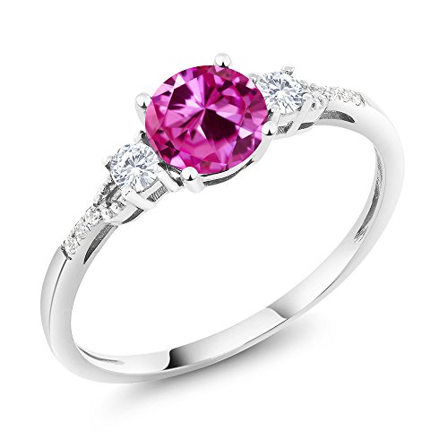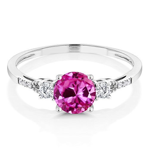 -. Title : 10K White Gold Diamond Accent Three-stone Engagement Ring set with Pink Created Sapphire White Created Sapphire 1.15 cttw