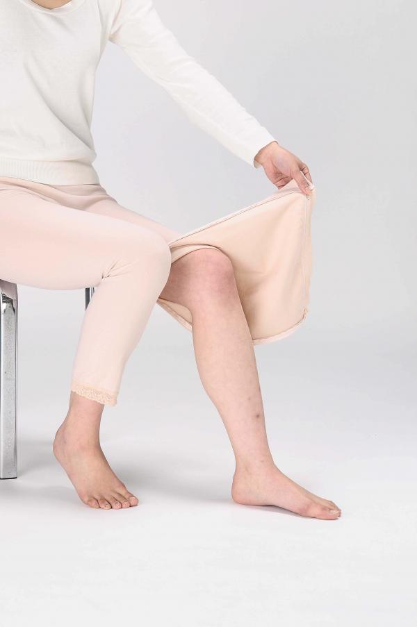 ロングボトムの足首からヒザまでの内側を縫わずにファスナーを使用!