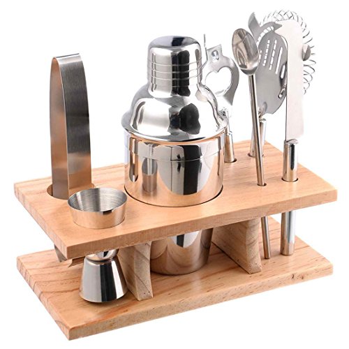 -. Title : TOOGOO(R) 8 PCs Stainless Steel Cocktail Bartender Bar Set Kit, Mixer Bundle Drink Martini Tools, Shaker Double Jigger Lemon Knife Strainer Bottle Opener Stirrer Tongs Wood Stand