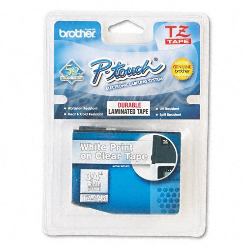 -. Title : Brother P-Touch Products - Brother P-Touch - TZe Standard Adhesive Laminated Labeling Tape, 3/4w, White on Clear - Sold As 1 Each - Perfect for labeling file folders and binders, name badges, and small signage. - Laminated surface wipes clean. - Resists water, grease, grime, fading and abrasion. - Withstands temperatures from -30°C to 100°C, allowing use for outdoor applications. -