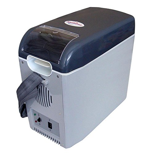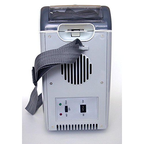 -. Feature : Includes cord storage compartment / Use as a travel cooler or warmer / Plugs into any vehicle 12 volt plug / Can fit up to 9 cans / 7 lt. capacity