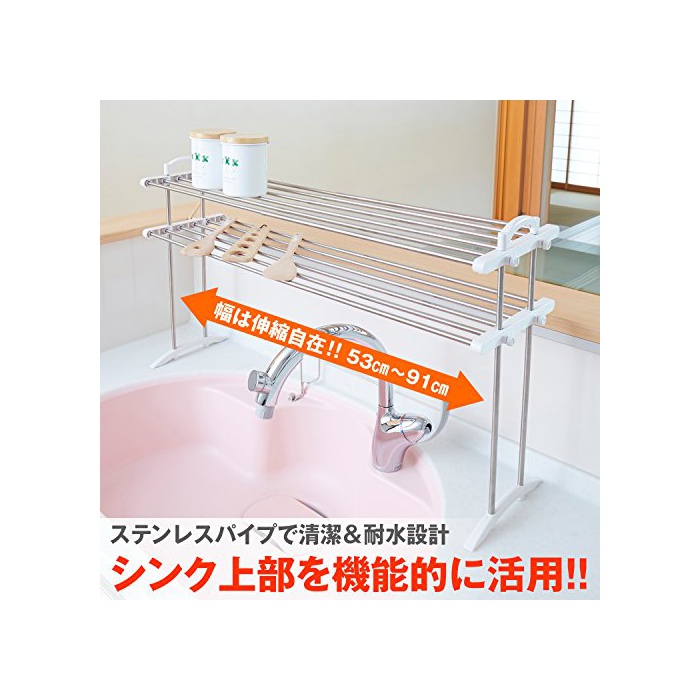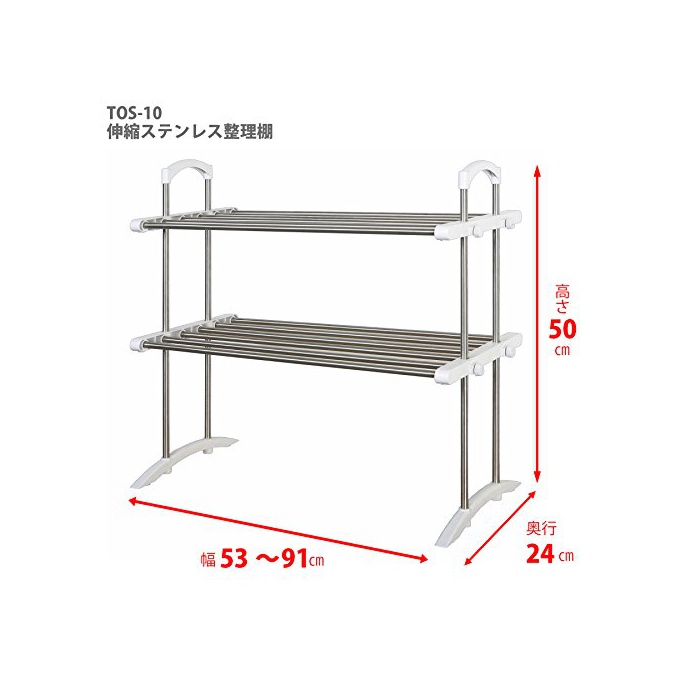 헤이안신 동공업 신축 스테인레스 키친 lak 붕2 단내하중붕1 단근처6kg 폭53~91cm높이50cm(길이)깊이24cm TOS-10