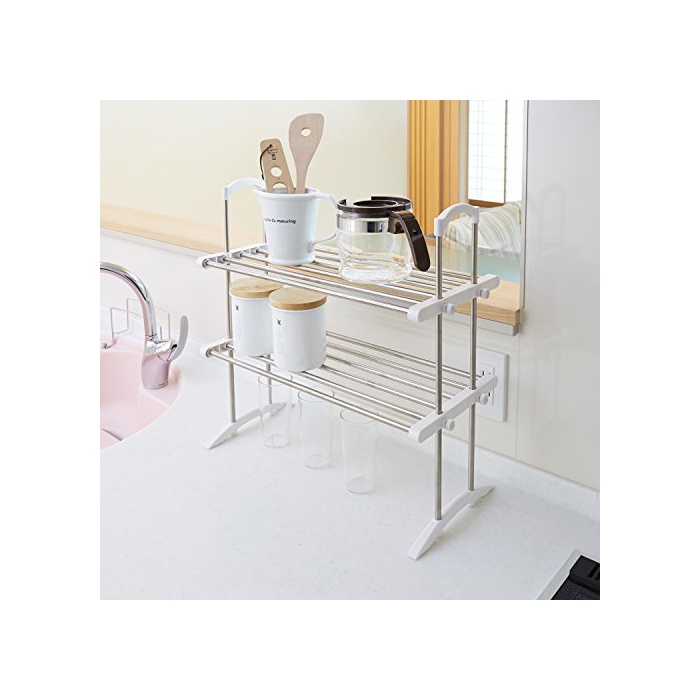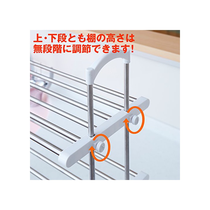 원본상품명: 平安伸銅工業 伸縮ステンレスキッチンラック 棚2段 耐荷重棚1段あたり6kg 幅53~91cm高さ50cm?行き24cm TOS-10