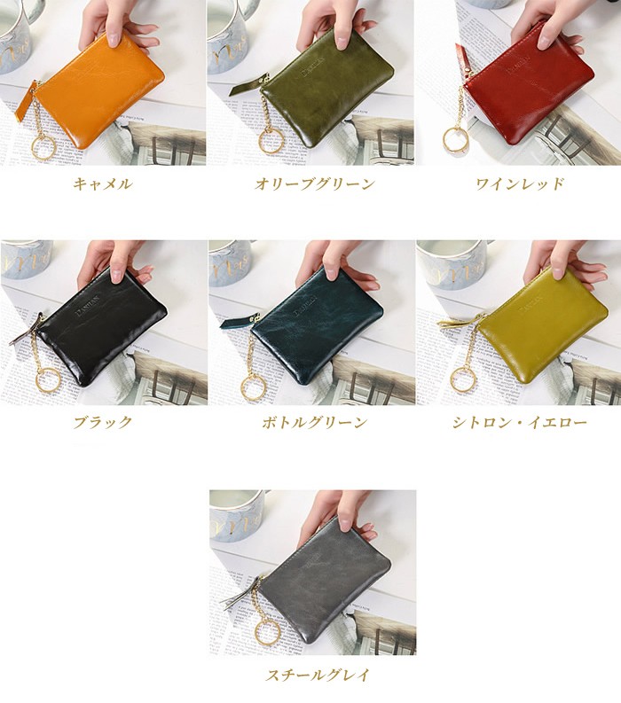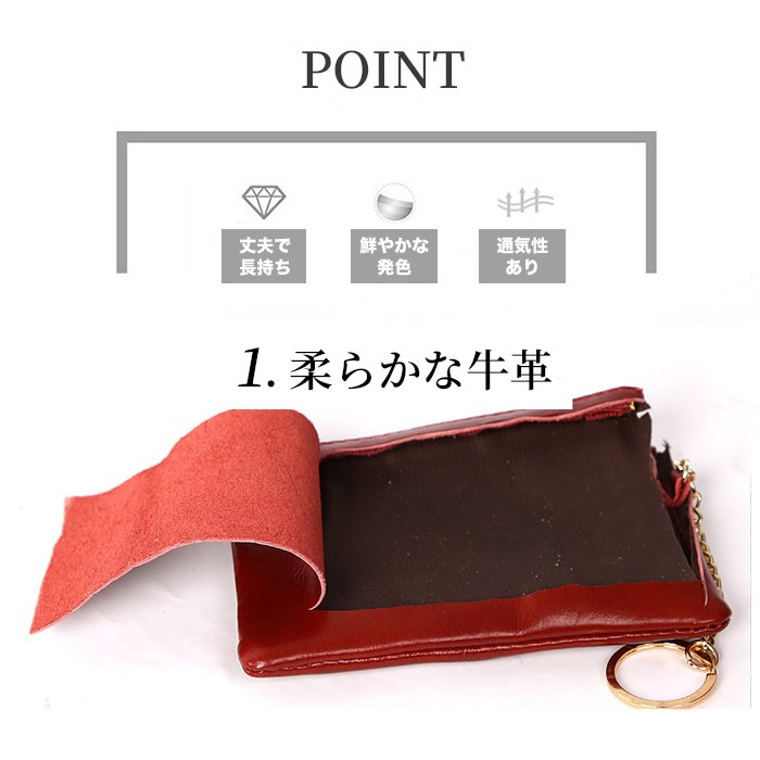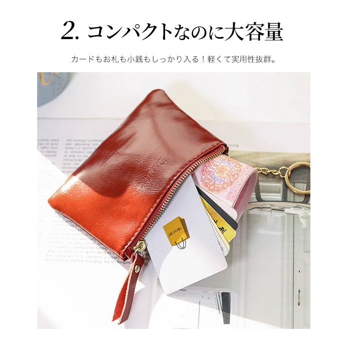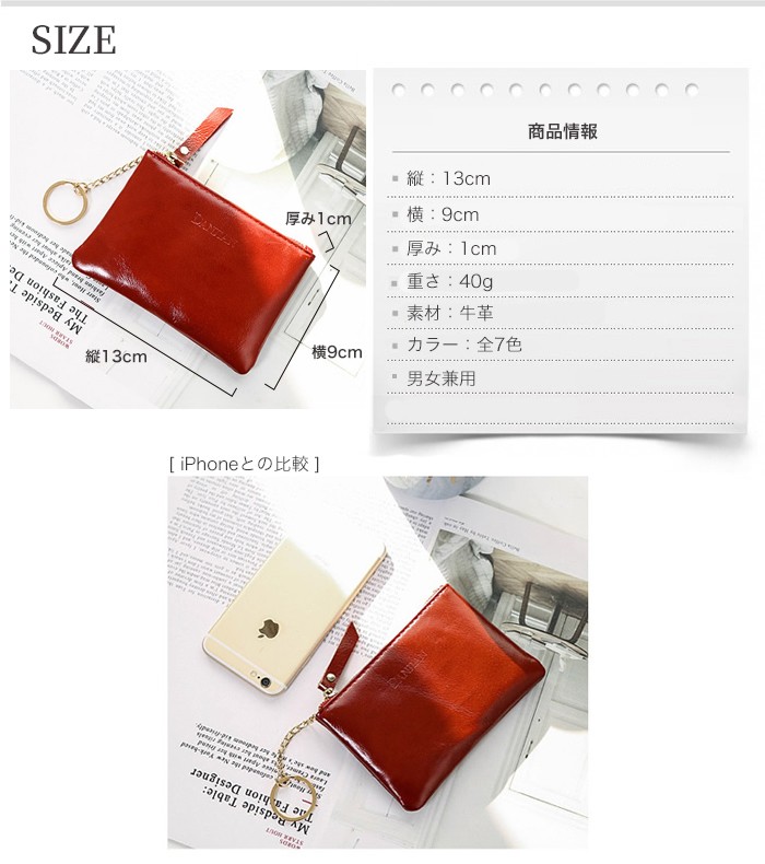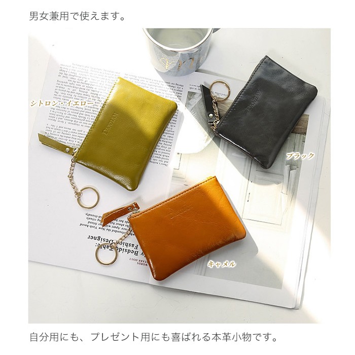 ★コンパクトな小銭入れ、軽量ポーチ(40g)!カラフルな色合いが可愛い♪ ★コンパクトなのにカードもお札も小銭も入る、軽くて実用性抜群。 ★柔らかな本革使用、男女兼用!自分用にも、プレゼント用にも喜ばれる本革小物です。 ★コンパクトなサイズなので、バッグが小さいときは財布替わりに 収納に困るポイントカードやメンバーズカードをざっくり入れたり、色んな用途でつかえます。