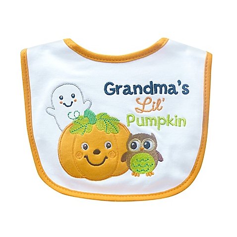 -. Feature : Celebrate baby's first Halloween with "Grandma's Lil' Pumpkin" Halloween Bib, the perfect prop for a photo to give Grandma / Fits babies from 0 to 12 months / Adorned with appliqué and embroidery / 100% cotton front with absorbent terry cloth back / Machine washable and dryer safe