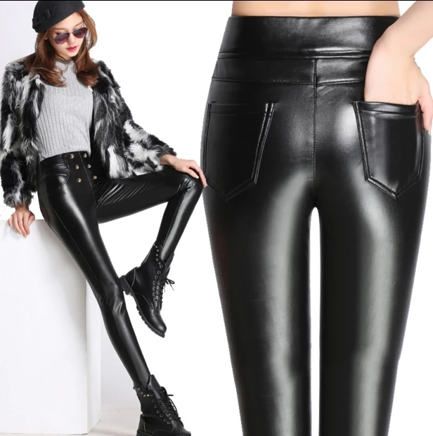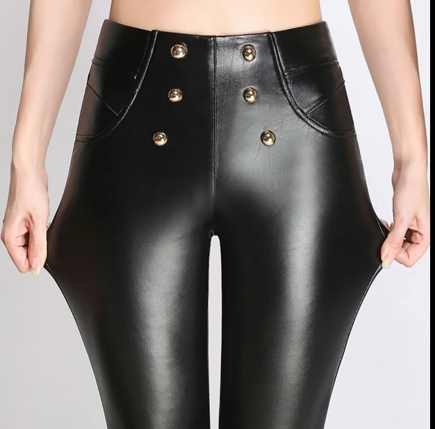Trousers for women pants women Ukraine:pantalon mujer genuine leather pants Capri female summer black pants