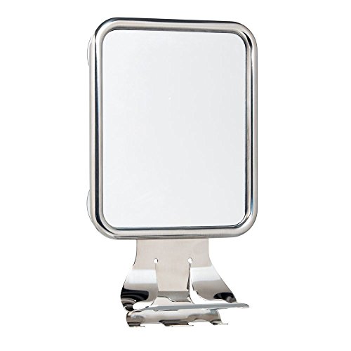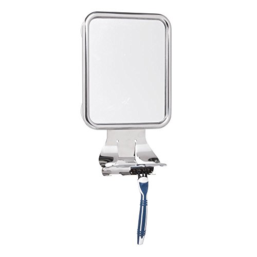 InterDesign Forma Suction Bathroom or Shower Shaving Mirror with Holder for Shaving Cream and Razor Hooks – Polished Stainless Steel