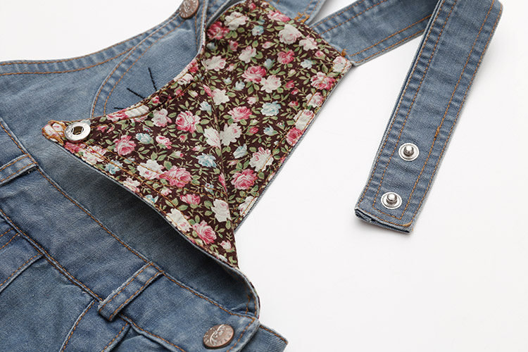 此款印花工艺为刺绣,有按扣,裙长包括背带