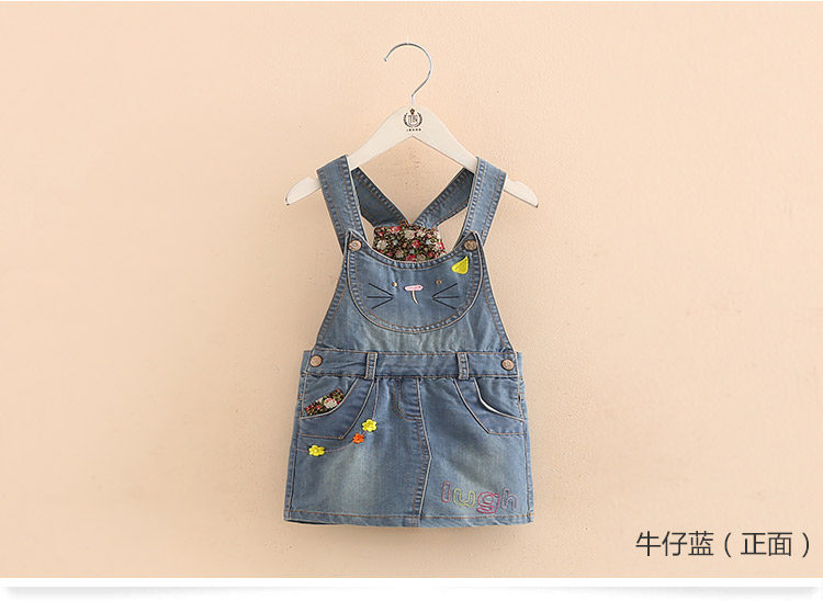 宝宝牛仔背带裙女春夏装新款女童童装 儿童刺绣裙子