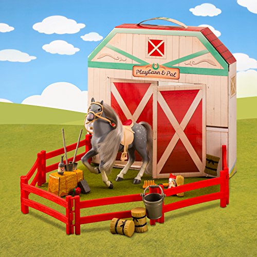 -. Feature : Luxurious mane and tail can be combed and groomed with accessories provided / Accessories with everything a stable has - easy to snap fences, bales of hay, pail, fork & spade, food stuff for the horse / Assemble the packaging to form a complete stable/barn environment! / Mane and tail can be combed and groomed with accessories provided / Connect the packaging to the barn for a compete play-barn environment / Tons of pretend play fun