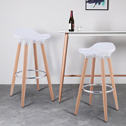 -. Feature : 【Modern & Classic】This elegant bar stools set combines the modern and classic style, which is perfect for your restaurant, bistro, coffee house, patio, home kitchen or any other decor theme. / 【Comfortable Design】The round stainless steel footrest is more durable and stable, which provides a comfortable place to rest your feet. / 【Non-Marking】Each leg has non-marking feet caps so that it won't make scratches to your wood floor. / 【Easy Handling】Constructed with ABS, beech wood, and metal, this bar stool is easy to clean with damp cloth. / 【Shipping & Customer service】UPS or USPS will deliver the item to your house in 3-6 business days after you placed an order. We packed the item as good as we can, if there is any damaged part, please contact us first and offer us pictures of damaged part, we will solve the problem as the way you want(discount or replacement)
