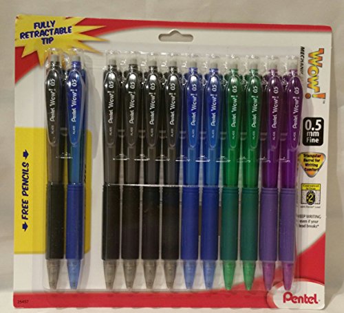 The Pentel Wow! mechanical pencil is a low price pencil with many features found in more expensive pencils. The unique triangular shape barrel and grip makes it easy to hold and keeps the pencil from rolling off writing surfaces. Its distinctive design stands out in a crowd. Keep writing even if your lead breaks with our unique retractable tip design. Plus, the fully retractable tip protects pockets & purses. It comes pre-loaded with Pentel Super Hi-Polymer HB lead - never needs sharpening and produces a clear dark line.