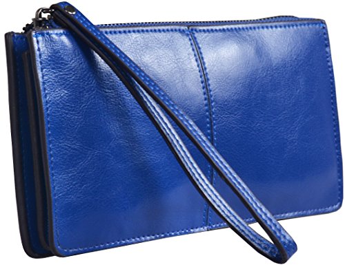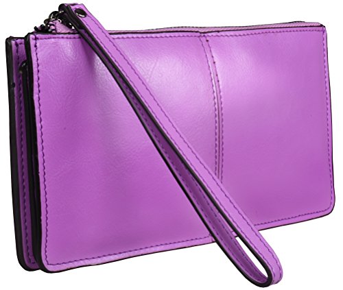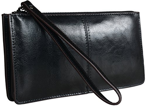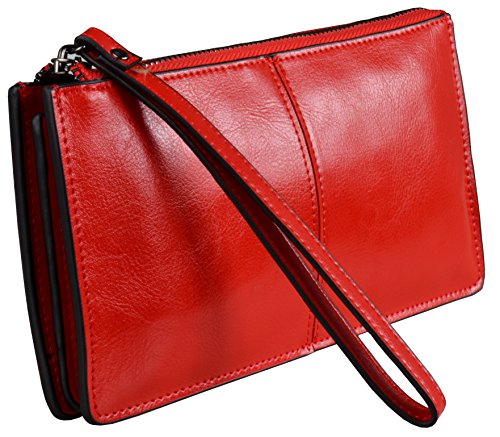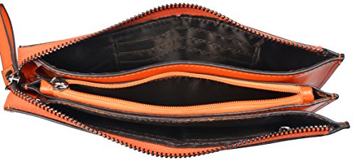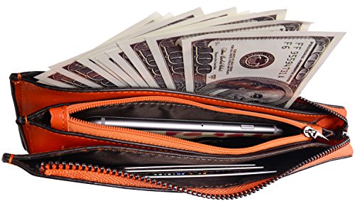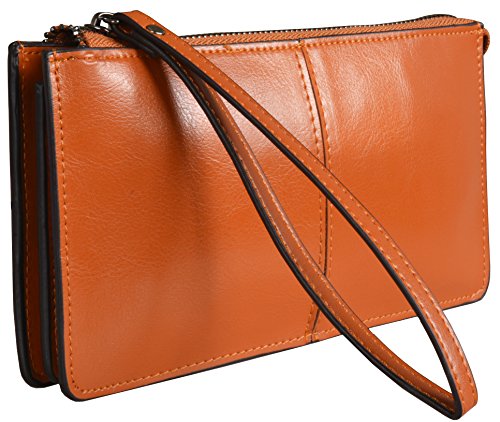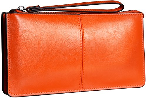 Heshe Womens Zippered Clutch Credit Card Holder Long Wallets with Wristlet (Orange)