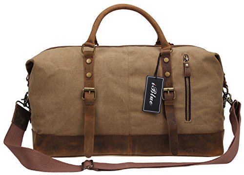-. Brand : iblue -. Department : unisex-adult -. Feature : ✔Quality Materials- The Main Pocket Has the Double Large Ykk Zipper(the Ykk is on the metal zipper),Genuine Cow Leather,High Density Heavy And Durable Canvas with Trim Stitching Handcrift.WE HAVE 1 YEAR QUALITY GUARANTEE. / ✔Lighter Weight But Durable- High Density Durable Light Weight Soft Lining,A Detachable and Adjustable Thick Canvas Braid Strap With Wide Padded , The Bottom Is Canvas With Meta Studs For Feet,The Whole Bag Weight Is Lighter But Durable. / ✔Perfect Size Weekend Overnight Bag- The Product Dimensions Is 21 In L X 10 In W X 15 In H;Would Work Great As A Carry On While Flying, On The Train, On The Bus, Or In Any Form Of Transportation. / ✔Large Capacity- The Large Compartment Of The Airline Carryon Bag Can Put A Laptop, IPad, Notebooks And Clothes; Two Inside Zipper Pockets Can Store Small Items Without Having Them Roll Around Inside The Large Compartment; Two Open Pockets For Organization; Two External Pockets Can Easily Hold A Phone, Passport, Tickets And Other Essentials For A Trip. / ✔Multi-Functional Bag- It Can Be As Canvas Carryon Bag,Travel Garment Bag,Weekend Travel Bag,Large Weekender Bag,Carry On Lage Bag ,Canvas Travel Tote,Sports Duffle Bags,Overnight Duffel Bag,Gym Handbag;A wonderful and practical gift or present for Valentine's Day,Father's Day,Teachers' Day,Thanksgiving, Christmas, Birthday or almost any other occasion. -. PackageQuantity : 1 -. ProductGroup : Apparel -. ProductTypeName : LAGE -. Title : Iblue Oversized Canvas Leather Carry on Duffle Bag Overnight Bag Khaki #381
