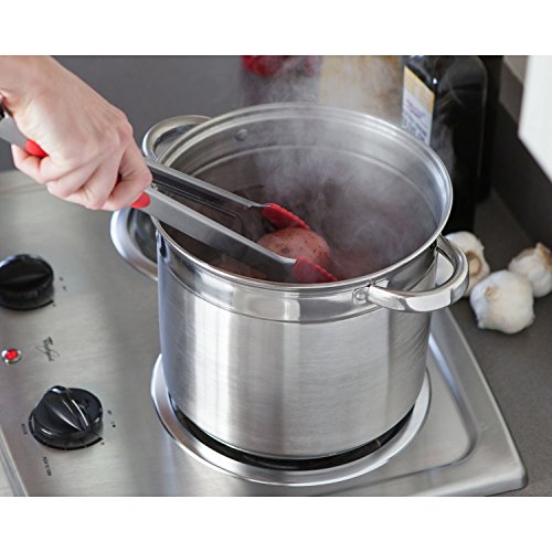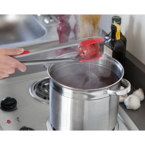 Studio : Ergo Chef Publisher : Ergo Chef Binding : Kitchen Product Description Ergo Chef's 15-inch Duo Tongs are constructed from heavy duty stainless steel and BPA-free silicone. The silicone side is safe for non-stick pans, won't scratch your grill surface and is heat resistant to 500 degrees F. The ergonomic grip and angled head make it easy to pick up delicate foods with the silicone side of the tongs. The stainless steel side is great for extra grip when turning heartier foods and is safe for use on aluminum or steel pans. The tong head has a slot which allows liquids to easily drain from food when removing it from a pot of boiling liquid or a deep fryer for no mess. The handle features a comfort non-slip grip heavy duty spring for precise control. Locking heads make it easy to store in a drawer. Great for use on the grill or in kitchen. Top rack dishwasher safe. 0