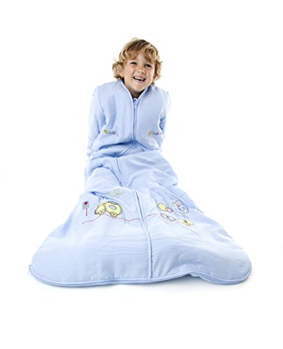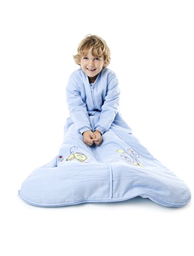 Feature : Premium quality sleep sack wearable blanket made from 100% cotton - ensuring your child has a peaceful and safe night's sleep / Baby sleep sack with long sleeves, sleeves are slightly less padded then the sleeping bag to allow unrestricted movement and are not removable, middle zip opens from top to bottom / Children sleeping bag standard weight approx. 2.5 Tog for all year round use and room temperatures between 59-70 F° / Size XL: 3-6 years - suitable from 40-46 in / Outer/Lining: 100% cotton, Padding: 100% soft polyester fleece, easy care - machine wash at 100 F° and low heat tumble dry