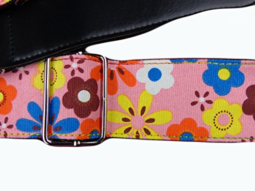 -. Title : New Flower Colored Hippie Acoustic Electric Guitar Strap Faux Leather Tabs