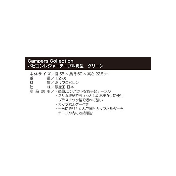 원본상품명: キャンパ?ズコレクション パピヨンレジャ?テ?ブル角型 グリ?ン