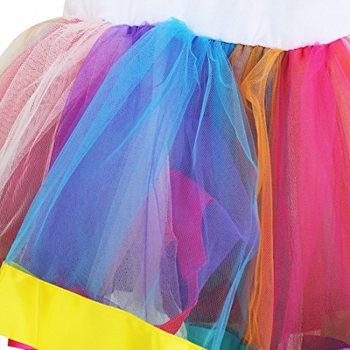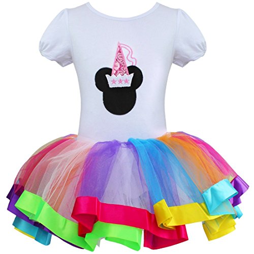 -. Brand : FEESHOW -. Department : baby-girls -. Feature : Girls soft cotton tutu dress dancewear with colorful skirt / Round neckline, short sleeves with ruched elastic openings / Top front with an applique of Minnie Mouse and one halloween hat / Tutu skirt with inside panties, 2 layers tulle for additional fullness / Suitable for ballet dance, stage performance or parties, Halloween costume and so on -. ProductGroup : Apparel -. ProductTypeName : BABY_COSTUME -. Title : FEESHOW Child Girls' Rainbow Minnie Mouse Leotard Tutu Fancy Dress up Costume