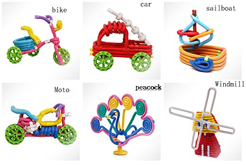 【Package Contents】65pcs building kit includes colorful sticks, connectors, wheels, cartoon stickers and illustrated guidebook.